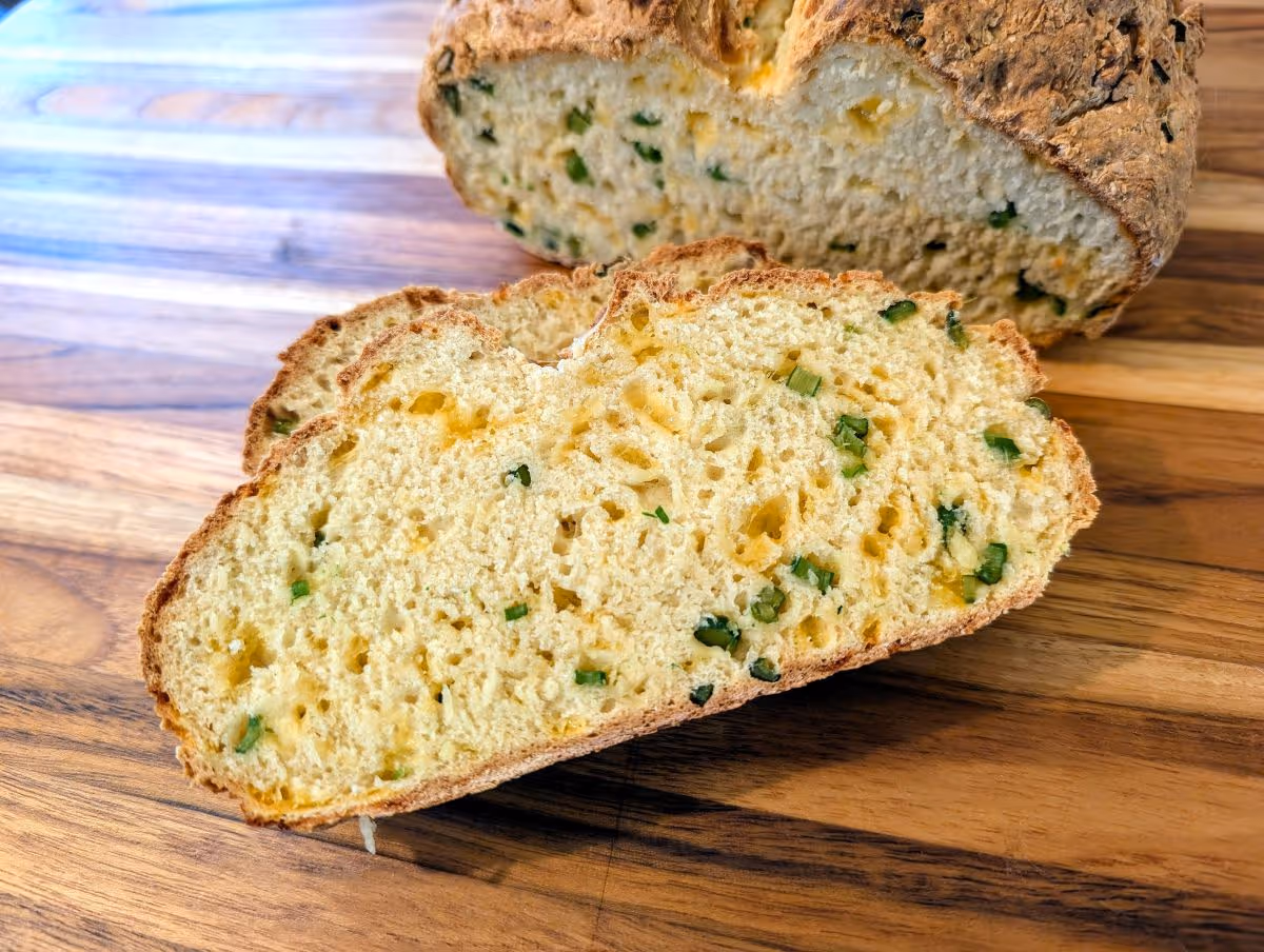 Irish soda bread is already a comfort food staple, but this version adds a flavorful twist: sharp cheddar cheese and chopped garlic scapes. The tangy buttermilk dough comes together in minutes and bakes into a golden-crusted loaf with a tender crumb and pockets of melted cheese throughout.