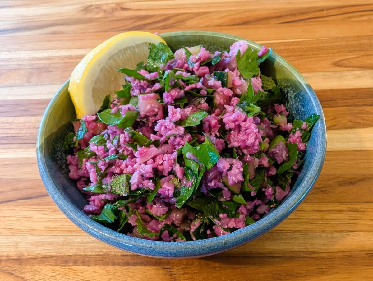 This dish comes together quickly and holds its texture beautifully, making it a strong option for meal prep or entertaining. With no bulgur to soak or cool, prep is simple and flexible whether you grate your cauliflower by hand or pulse it in a food processor.